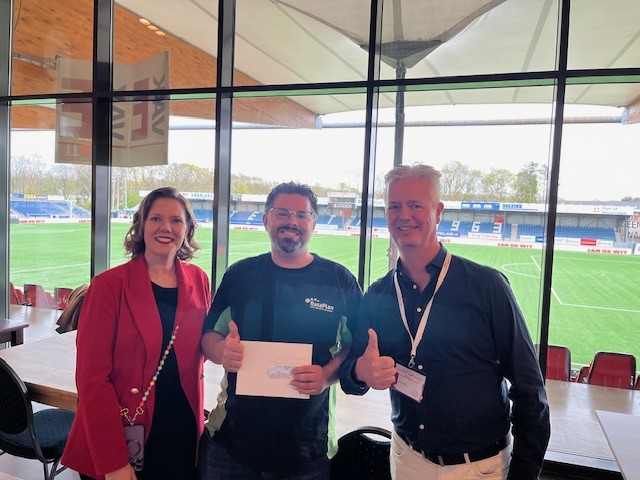 Dave van het bedrijf Rataplan was samen met een werkzoekende de gelukkige die kaartjes won voor een thuiswedstrijd van Telstar, een leuk extraatje dat Telstar aanbood tijdens deze Meet & Greet.